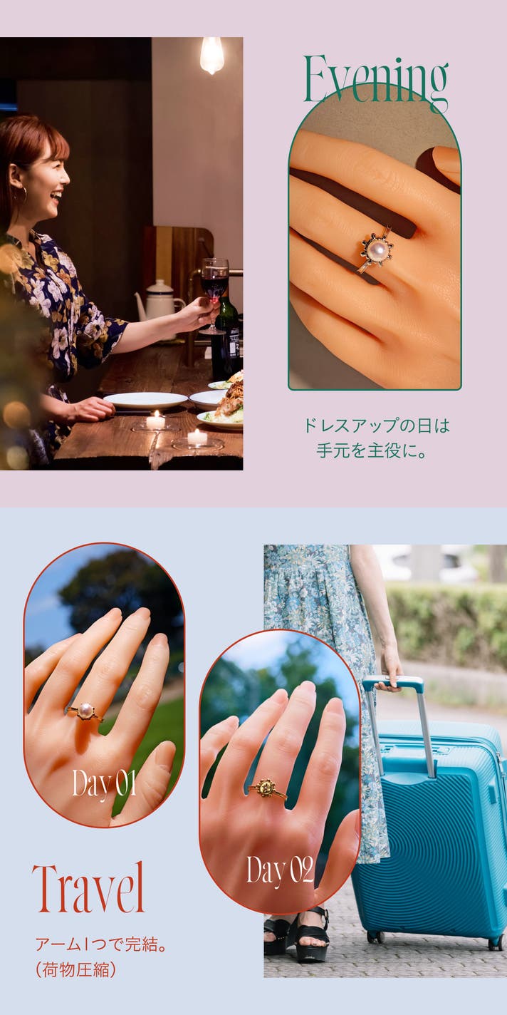 - 号数違いのアームご購入で様々な指に着けることができる“アジャスタブルジュエリー”