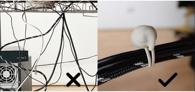 机下のPCケーブル類・電源ケーブル・イヤホン・USBケーブル・モバイルバッテリー 等、沢山のコードが絡み合っているのを見るのはとても目障りです。