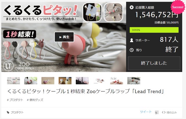 「Makuake(マクアケ)」は、実行者の想いを応援購入によって実現するアタラシイものやサービスのプラットフォームです。このページは、 プロダクトカテゴリの 「くるくるピタッ!かわいいZooケーブルラップ 第二弾 ジャングルアニマルシリーズ」プロジェクト詳細ページです。