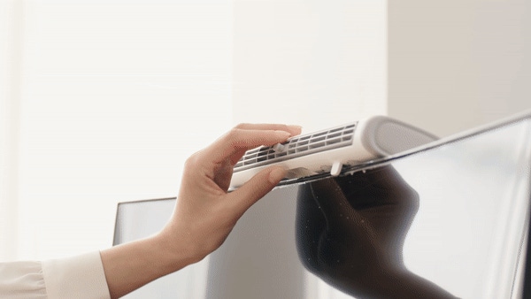 - エアコンを模したデザインで送風の角度を120°自由に調節できる。広範囲に風を送ります。