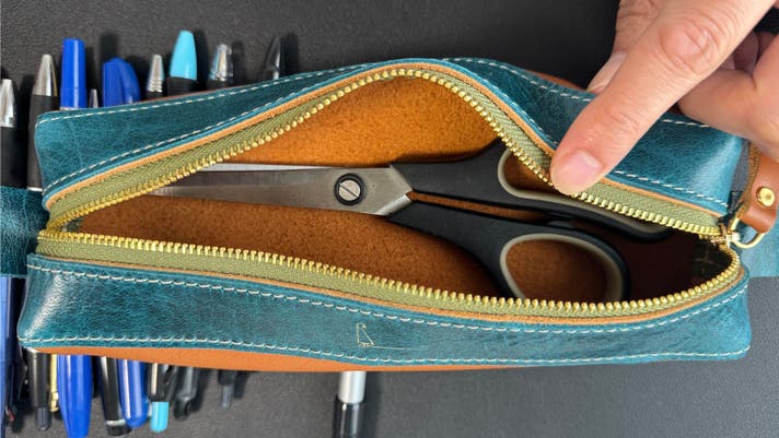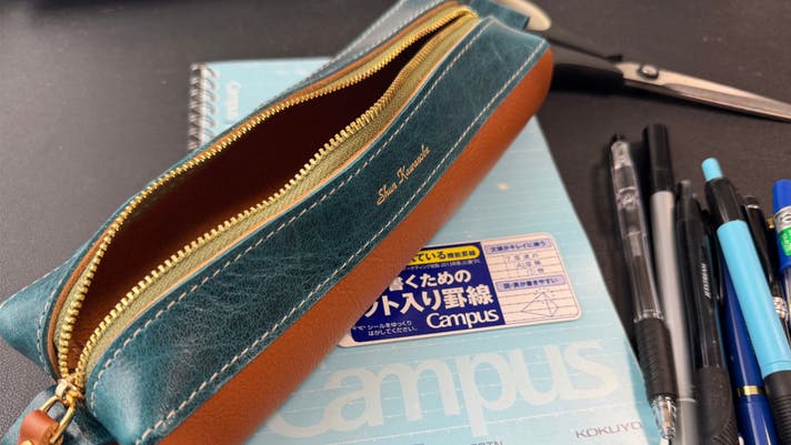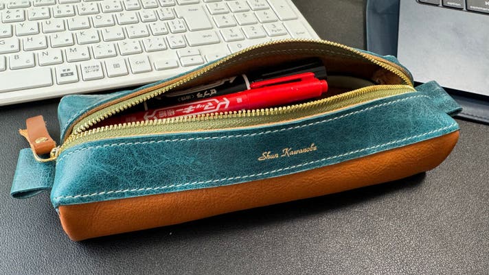 たくさんの筆記用具をパンパンに詰めても多少、革が馴染んでくれます。