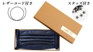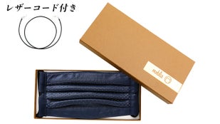 革の厚みを極限まで薄くし(0.7ミリ)、折ヒダを深くすることで、あごまでしっかり広がる構造を実現。その他、通気性、着け心地、高級感を追求し、進化した「洗えるカウレザーマスク」が誕生しました。