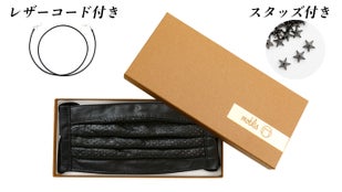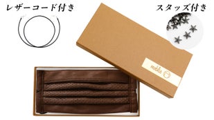 洗えるカウレザーマスク2枚セット(色、サイズ、スタッズをお選びいただけます)ギフトボックス入りレザーコード1本