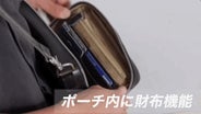 - ポーチの裏側⽚⾯が財布のように使える。カード6枚、お札20〜30枚、⼩銭もたっぷり収納可能