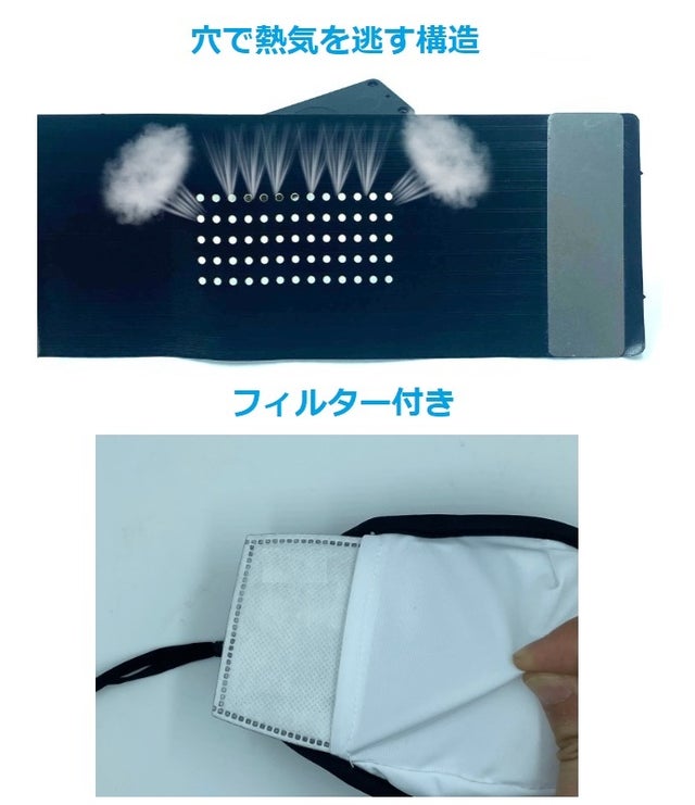 A:市販のマスクや帽子に取り付けできませんので、本サイトにて販売中の専用マスクと帽子をご利用ください。