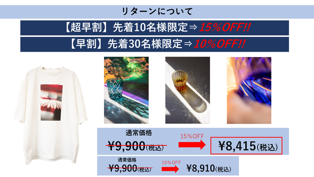○Tシャツ 1点 [一般販売予定価格 9900円(税込)の10%OFF]