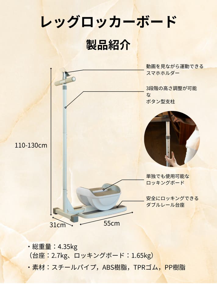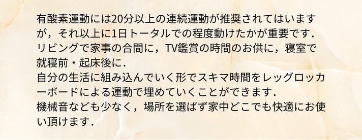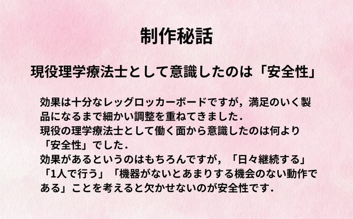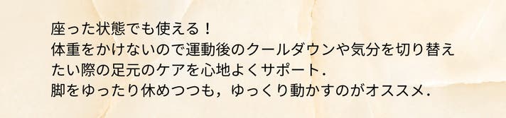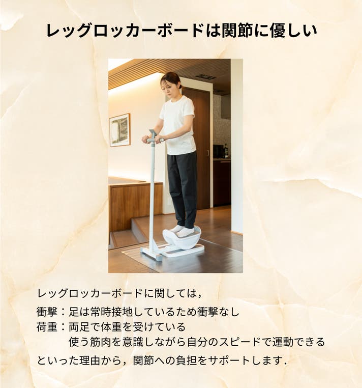 - 使いやすさ・効果・関節への負担の少なさを考慮した運動機器として,現役の理学療法士が監修.
