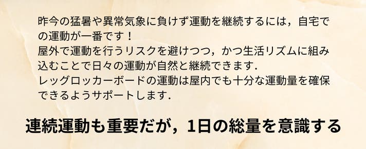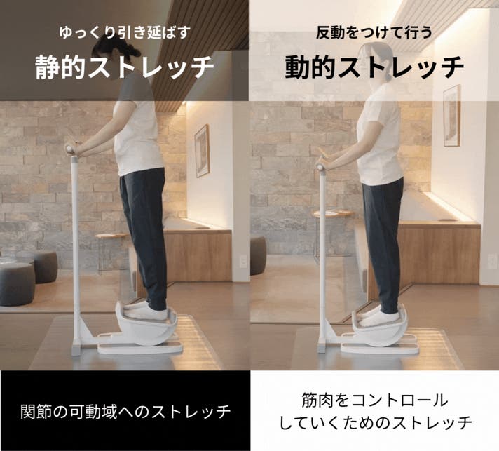 - ストレッチと運動を同時に行うことができ、筋トレとストレッチの両面からアプローチ!