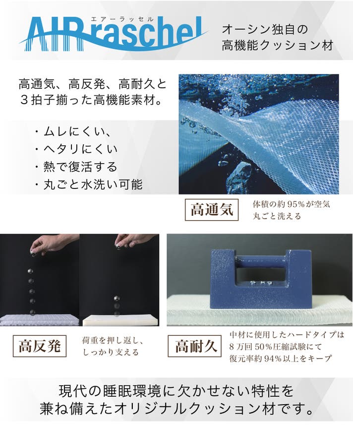 - 自社工場で製造するクッション材だから実現できる、厳選したクッションのバランス設計