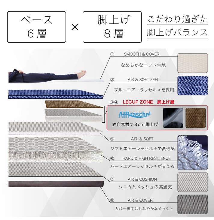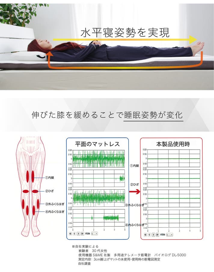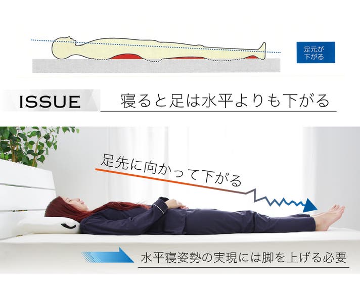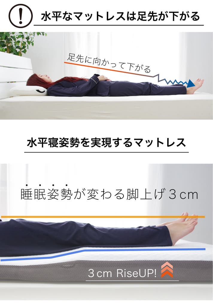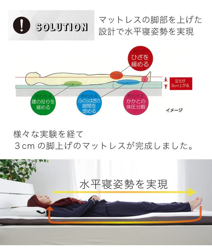 - 「まっすぐ」は足が落ちている!?水平寝姿勢を実現する「脚上げ3cm」のマットレス!