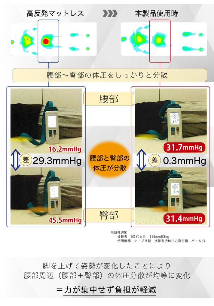 - 脚上げ3cmで睡眠姿勢が変わる!体圧分散の数値バランスも変化!