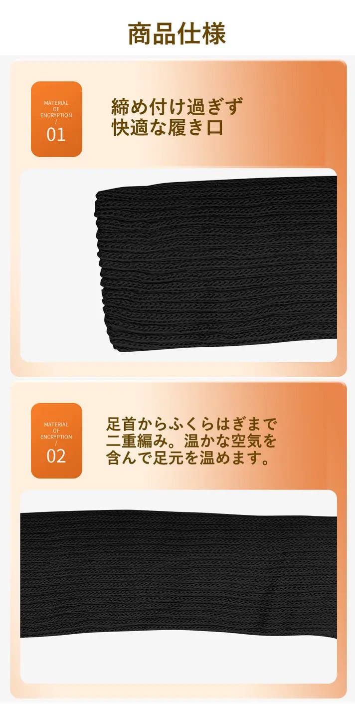 ※参考として、足のサイズ22cm~26cmを推奨しておりますが、特性上つま先があいておりますので、上記のサイズが合えば足のサイズに関わらずご着用頂けます。