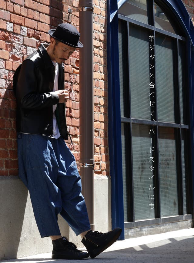 code : Leather jacket × BALLOON PANTS2(LIGHT INDIGO)