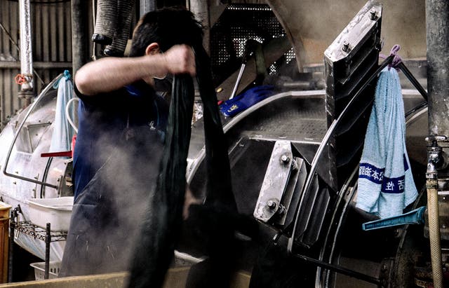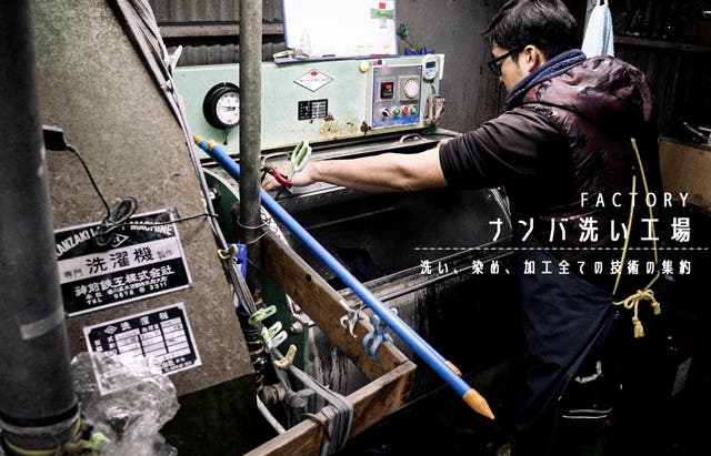 岡山県 倉敷市 児島にある、染色、洗いの匠、『 ナンバ洗い工場 』 さんとの共同制作。