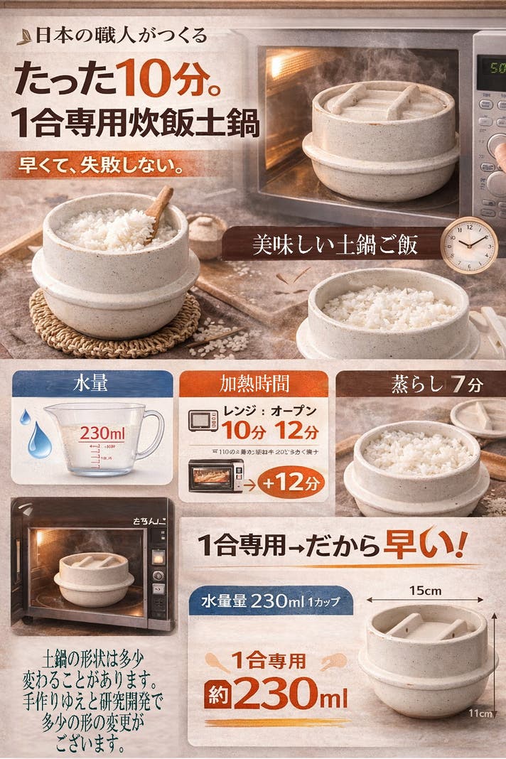 - 電子レンジ約10分、神業ご飯に脱帽。炊飯器不要、有田焼土鍋の遠赤外線で驚くほどふっくら
