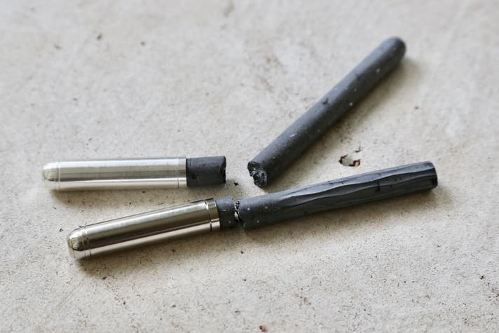 卵殻や底泥はいずれも硬い素材だが衝撃に弱い。実際に彰化での商談のあと、帰国後最初に受け取ったプロトタイプのサンプルは割れてしまっていました。まだ胴軸内に真鍮製の円柱上のシリンダーを入れて補強していないとはいえ、やはり万年筆としての素材としては、もう少し検討の余地があると判断。