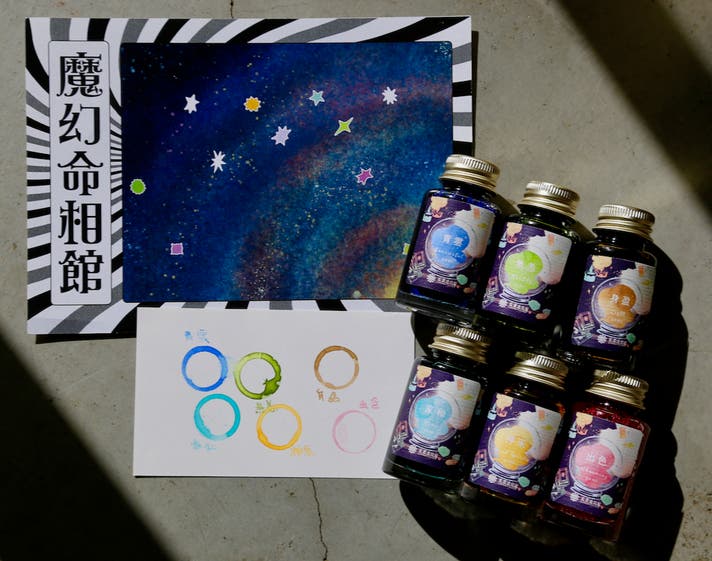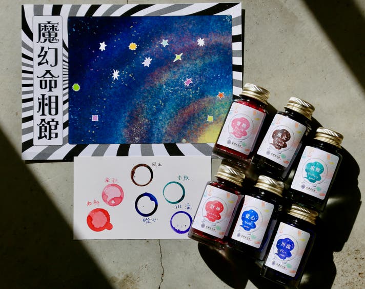 通常はイベントでの対面販売がメインの『魔幻命相館』インクコレクション。「3つのシーンを選び、進んでいくとインクとの偶然の出会いがある。」そんな藍濃道具屋の遊び心ある取組み。実は2025年12月から1月にかけて、新しい形での新装を予定しています。そこで、1人でも多くの日本の文具愛好家やインクファンの方々に『魔幻命相館』の存在を知ってほしい!」との頼社長からの強い要望もあり、今回リターン品の一部に加えました。