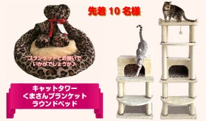 【先着10名様限定】キャットタワー&ヒョウ柄ラウンドベッド&くまさんブランケット