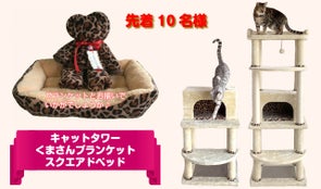 【先着10名様限定】キャットタワー&ヒョウ柄スクエアベッド&くまさんブランケット
