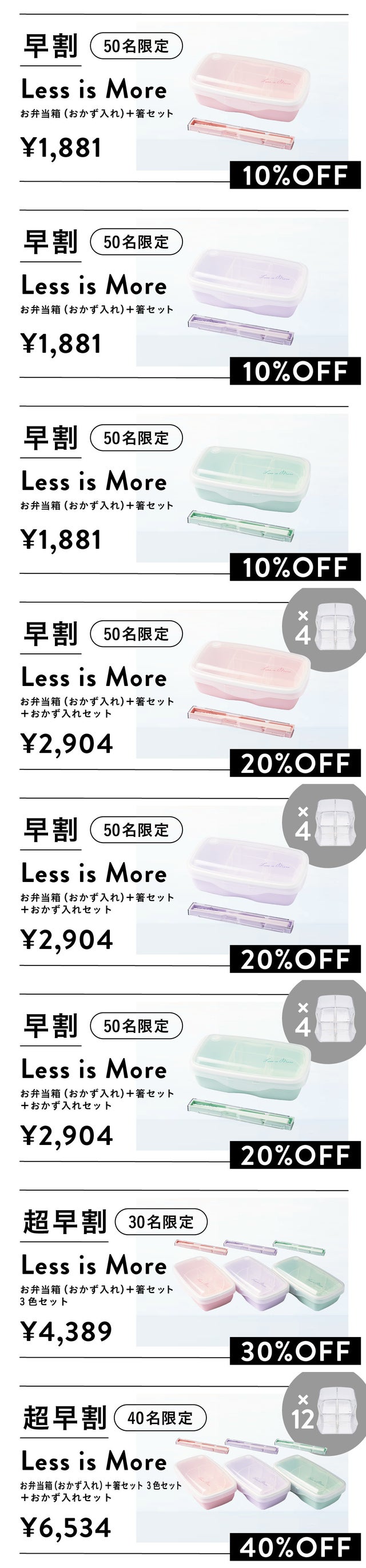 【超早割40%OFF】Less is More ×3セット+おかず入れ12個