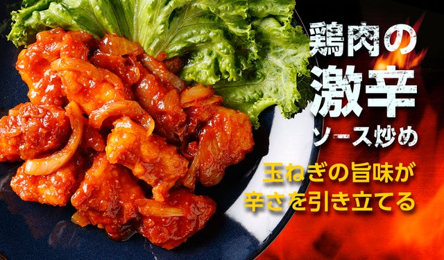 鶏肉の激辛ソース炒め:小麦、卵、乳