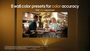 設置場所の壁が白くなくても大丈夫!8色の中から壁色にあわせて手動で映像の色を調整できる「ウォールスクリーンモード」を搭載。これにより、真っ白な壁やスクリーンがない場所でも、自然な色で映像観賞が可能です。