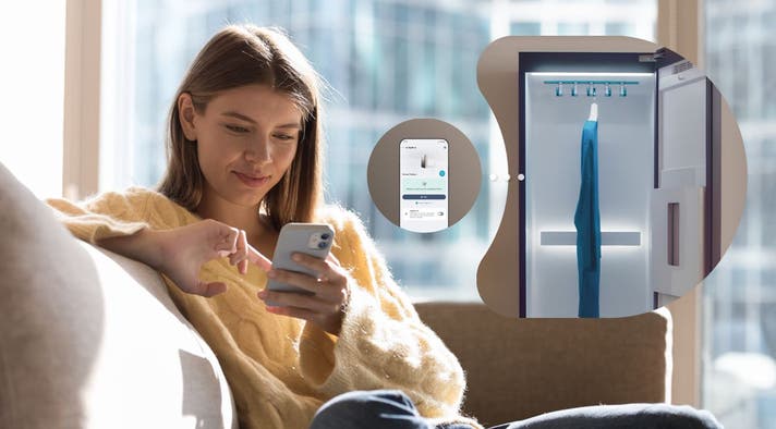 「LG ThinQ」アプリなら、いつでもどこでも⾐服を管理してモニタリング。