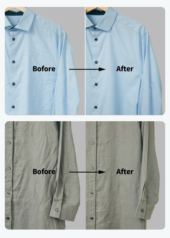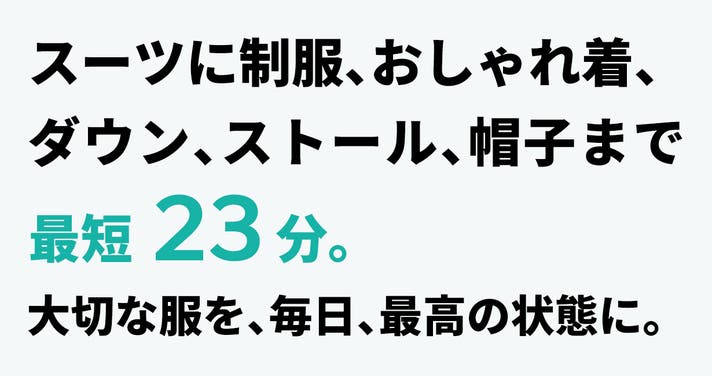 厚手のダウンジャケット、シワになりやすいシャツ、デリケートなウールやニット製品、濡れた衣服まで幅広く対応。ハンガー乾燥方式で、ムラなく均一に仕上げます。