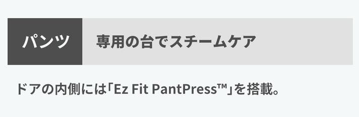 センタープレスが不要のパンツはハンガーに掛けてご使用いただければ、シワを伸ばしと衣類ケアができます。
