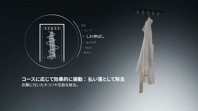Dynamic MovingHanger™は、ラックを使用する除菌と寝具コースを除いたすべてのコースで動作します。