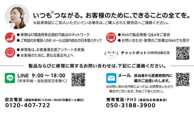 A. ご購入後の修理やお問い合わせは下記までご連絡をお願いいたします。