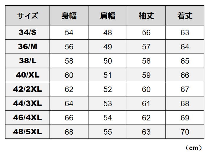 インターネットで衣服を購入される場合のサイズ選択で失敗する最も多いパターンが、単純にSサイズ、Mサイズ、Lサイズ等のみで選択される場合です。 先ずはご自身のヌードサイズと体格(Y・YA体、A体、AB体、BB・BE体など)を把握されることが重要です。 アウタージャケットのサイズ選択は、各々の体格やインナーの着用枚数により異なる為に一概には言えませんが、目安として以下をご参考ください。
