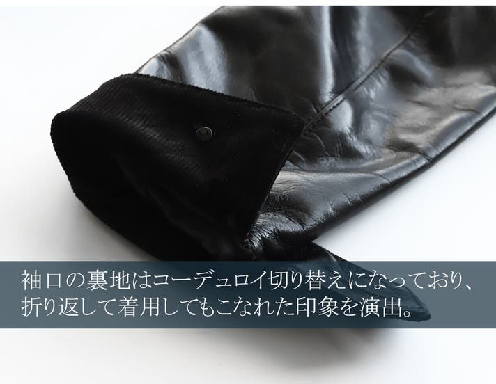 革らしい風合いは充分に実感できながらも、初めから馴染みよくストレスなく着用していただけるレザージャケットです。