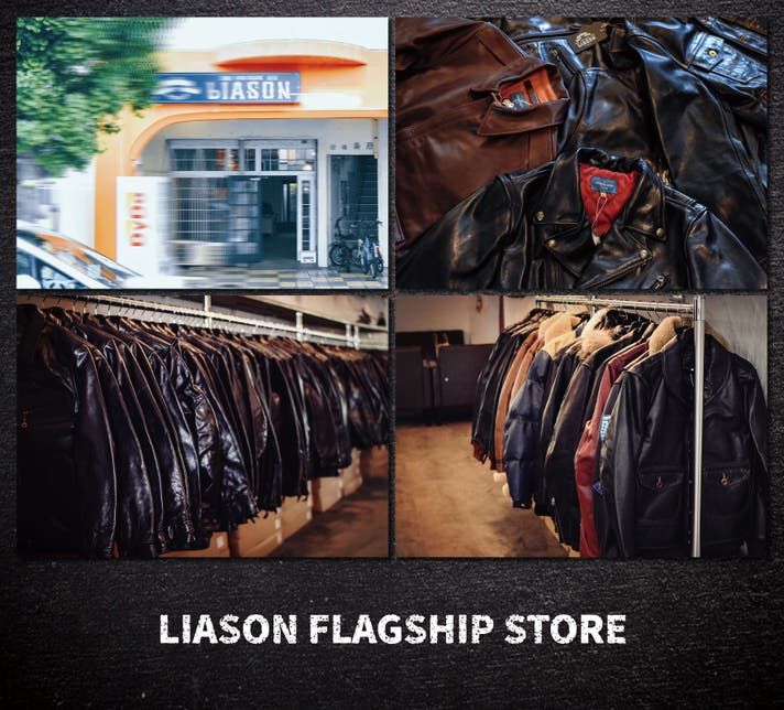 LIASONフラッグシップストアでは、今までにリリースしたレザージャケットはもちろん、アパレルアイテムをほぼフルラインナップで展開。