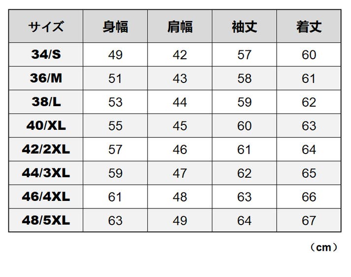 34(S)/36(M)/38(L)/40(XL)/42(XXL)/44(XXXL)/46(XXXXL)/48(XXXXXL)