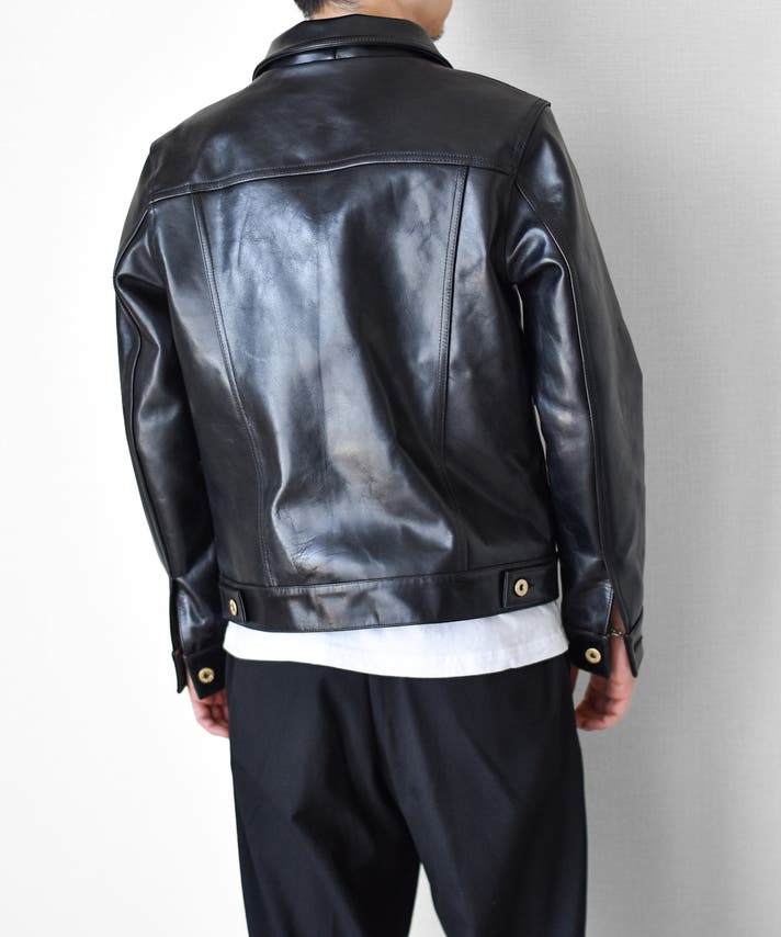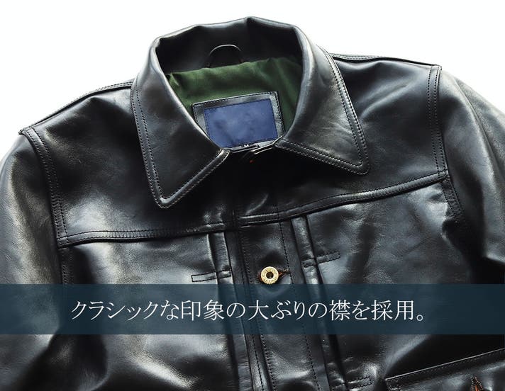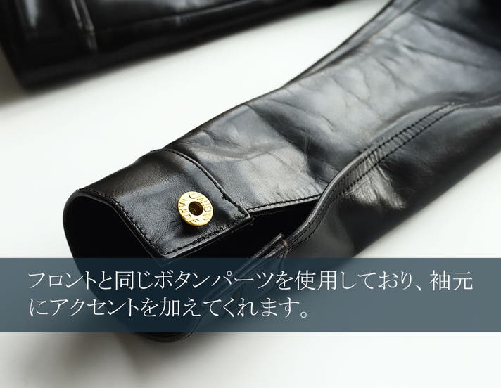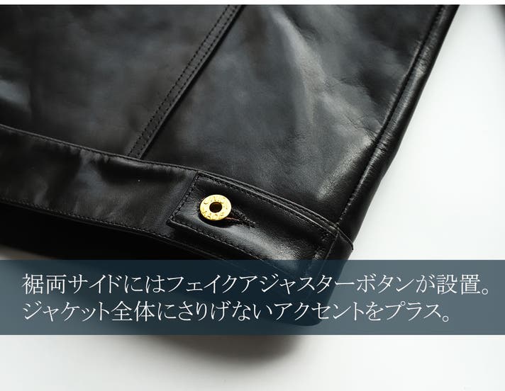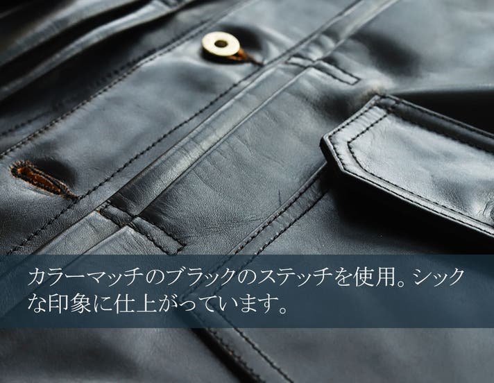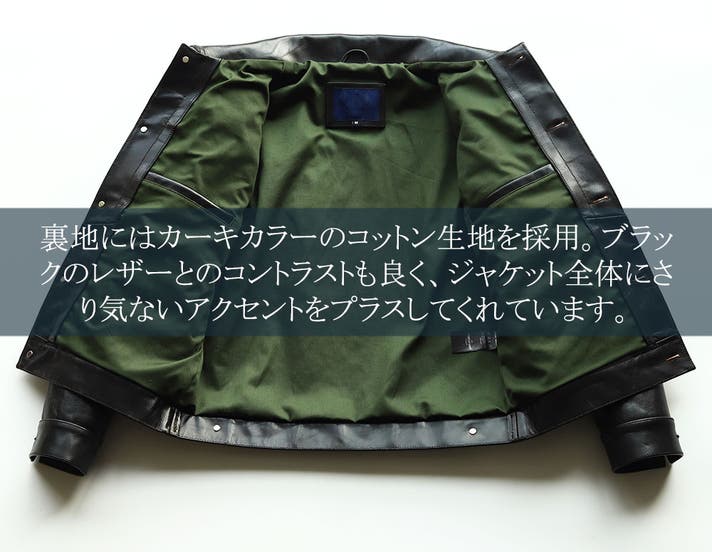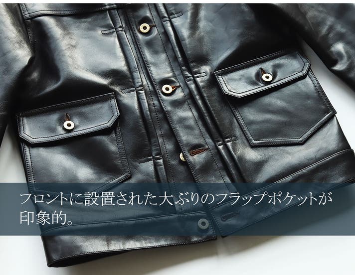 つまりレザージャケットに使用するにあたって、この上ない素材であるということです。 また、ツヤ感や質感など美しい風合いに定評があり、革好きからも非常に支持の高い革素材となります。
