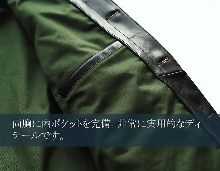 裏地袖部分はポリエステル素材切り替え仕様になっており、袖通りも良く、着用時にストレスを感じさせない作り。