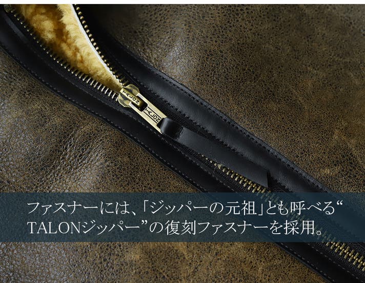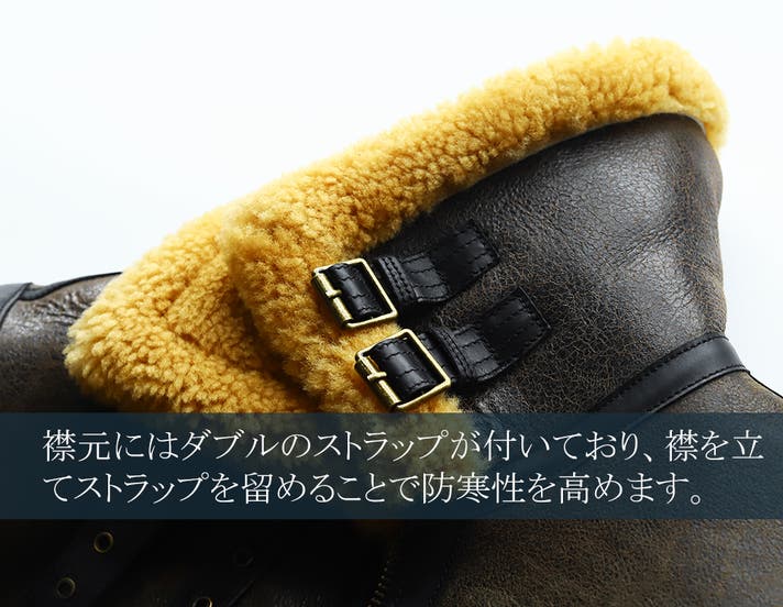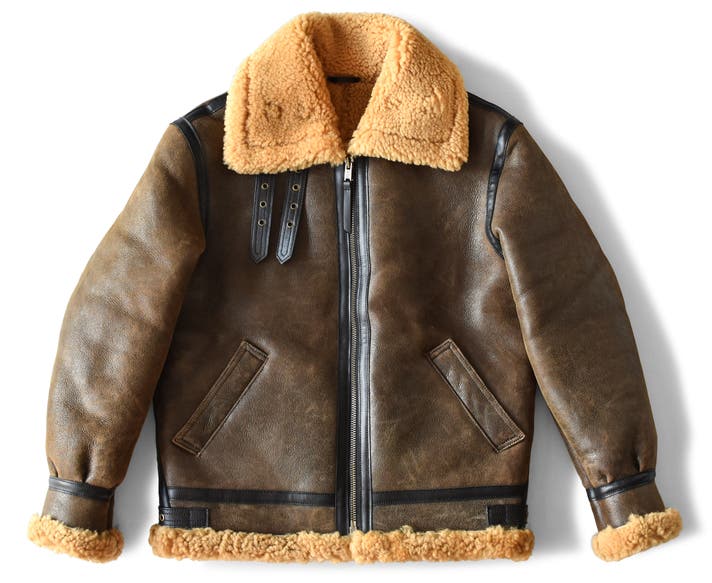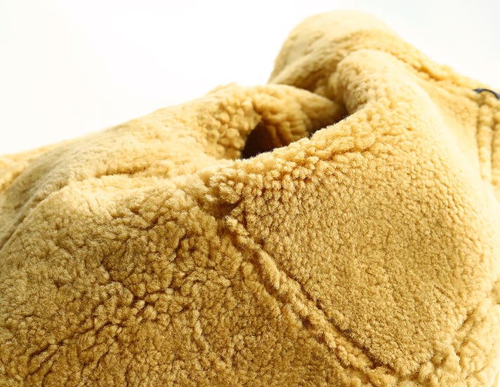 天然の羊革とウールが一体となった素材は、天然素材ならではの高い保温性を誇り、極寒の地でパイロットが愛用したのも納得の機能性。