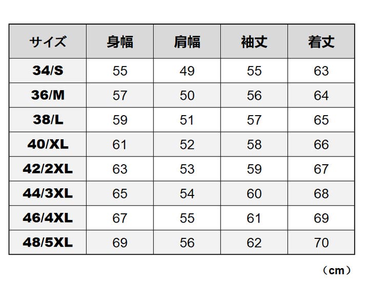 ◆サイズ :34(S)/36(M)/38(L)/40(XL)/42(XXL)/44(XXXL)/46(XXXXL)/48(XXXXXL)