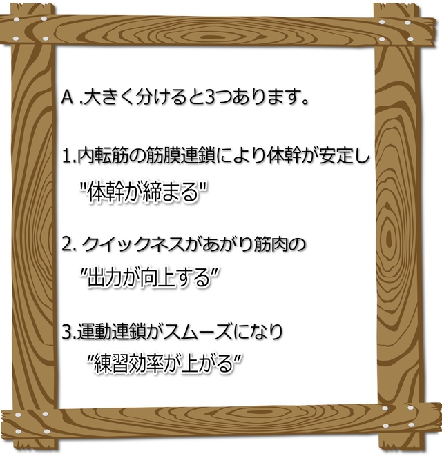 体幹の腹横筋までうまく使えるようになり、体幹が締まります。