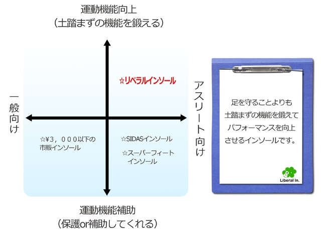 『リベラルインソール』は 足を保護しない代わりに、運動機能を向上させる足のトレーニングのインソールです。