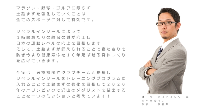 「Makuake(マクアケ)」は、実行者の想いを応援購入によって実現するアタラシイものやサービスのプラットフォームです。このページは、 プロダクトカテゴリの 「土踏まずを鍛えて自己ベストを更新する、アスリート専用リベラルインソールを広めたい」プロジェクト詳細ページです。