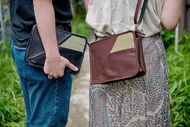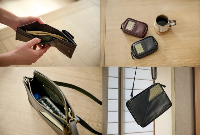 - アップサイクルした九州畳と姫路産の牛本革を使用したサステナブルアイテム