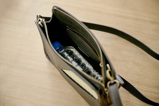 中にはジップポケットも付いていて、500mlのペットボトルも入ります。ちょっとしたお出掛けには十分な容量