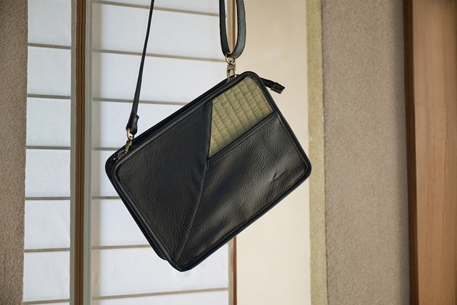 これまでにはない、デザイン・質感・肌触りが心に触れ、畳とレザーの経年変化を楽しみながら、いつも一緒にお出かけしたい、そんな気持ちにさせてくれます。