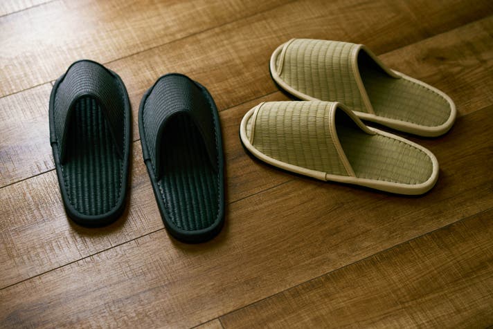 今回のルームスリッパでは、インソールだけでなく、甲の部分にも畳を贅沢に使用。