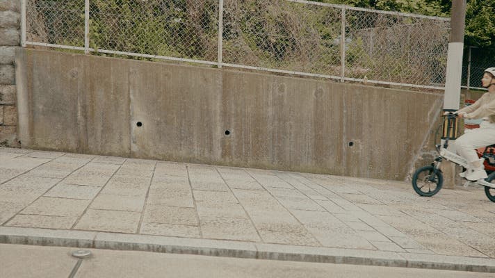 スロットルを回すだけで、簡単に走行できます。 フル電動&ペダルレスで時速20kmで車道および自転車道を走行可能となっています。