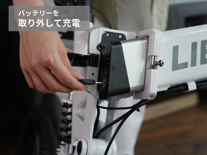 自宅のコンセントでサクッと充電可能。車体に直接充電、またはバッテリーを取り外して充電する、2WAY充電に対応しています。