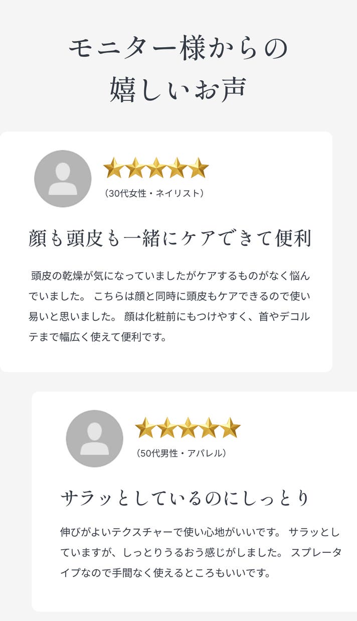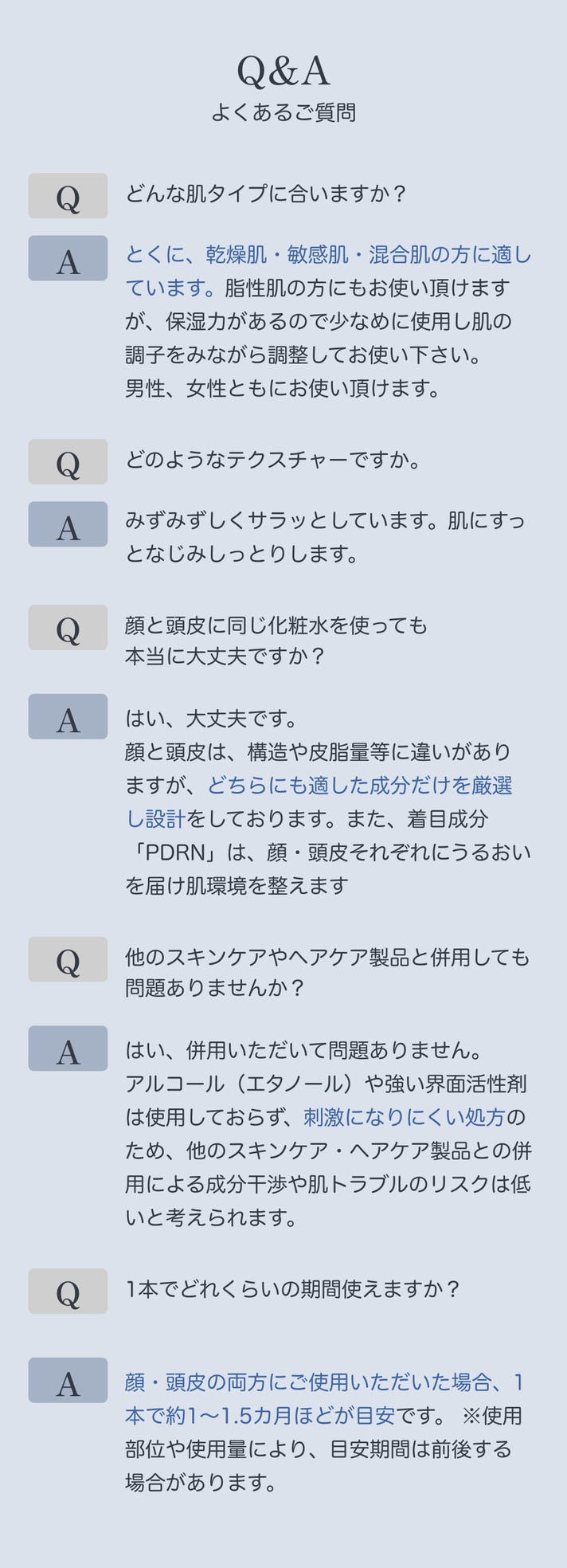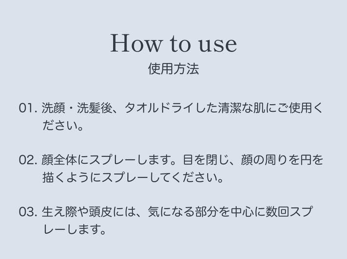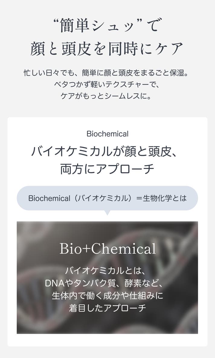 - 顔も頭皮も、これ一本。忙しい毎日にもスプレーで手軽に素早く高機能ケア。