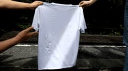 蓮の葉が持つセルフクリーニング特性を模倣した、撥水加工技術を取り入れ、Tシャツの表面に撥水層を追加しました。